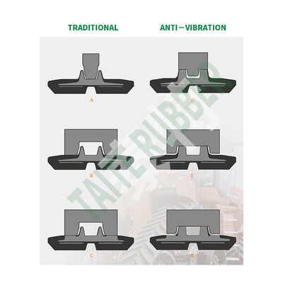 Advantage: We have our patented “AVT”(anti-vibration) design by an independent acoustic engineer in 2007, and after tests run on 3-5 tons excavators using both soft and hard surface and the average result was an amazing 75% less vibration than ordinary tracks without “AVT” design.